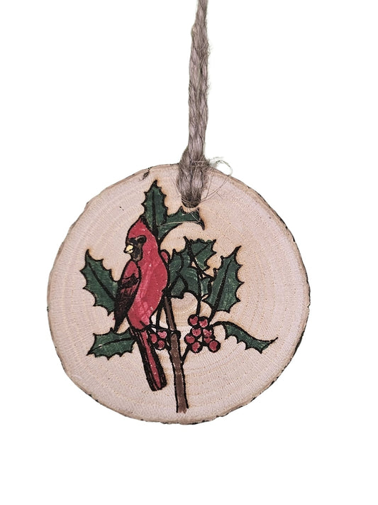 Wood Burned Cardinal Christmas Tree Ornament