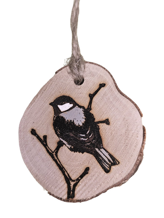 Wood Burned Chickadee Christmas Tree Ornament