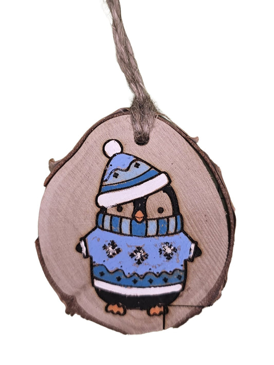 Wood Burned Penguin Christmas Tree Ornament