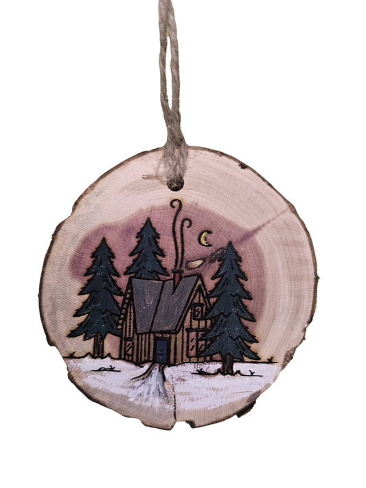 Wood Burned Snow Scene Christmas Tree Ornament